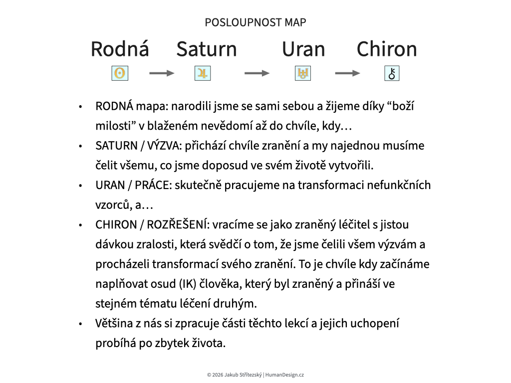 Dotkneme se také tématu "životního zranění", znázorněné postavením Chirona v mapě.